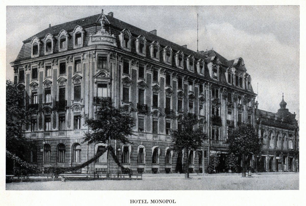 Первоначально Hotel Monopol Wrocław был построен в конце XIX века как респектабельная угловая гостиница на одной из самых оживлённых улиц Бреслау. Рядом существовал второй корпус — более утилитарный, связанный с торговыми и обслуживающими помещениями. После реконструкций и функционального слияния в межвоенный период оба здания стали восприниматься как «одно», хотя их фасады, этажность и роль в городском пространстве различались.
